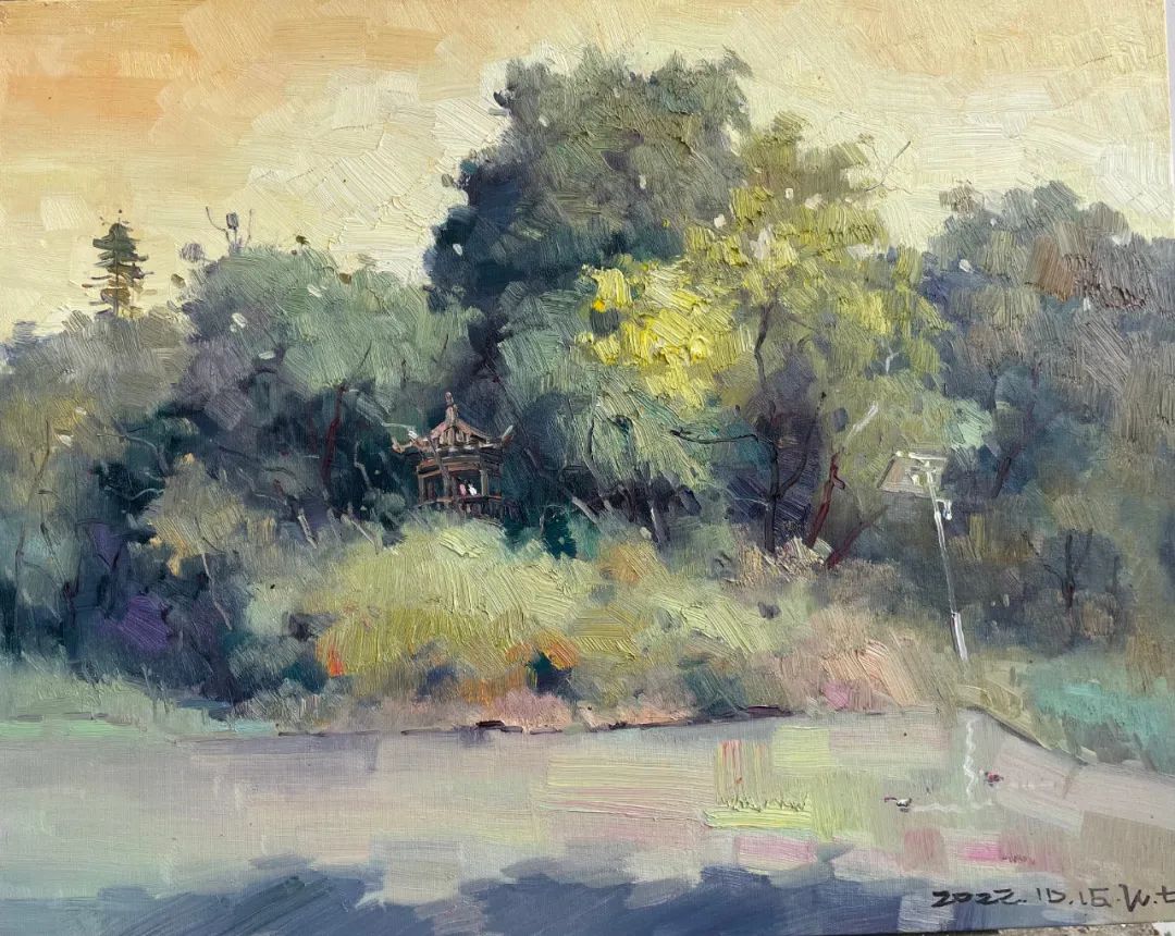 刘海荣 《写生梅湖》 布面油画