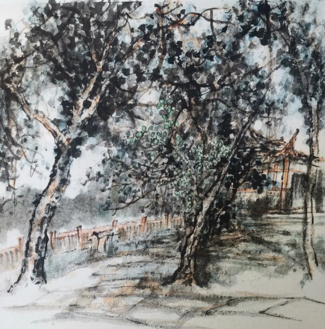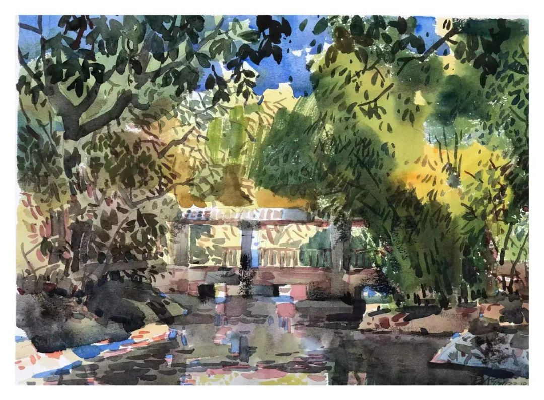 陈洪 《深秋—写生八大的园林》 水彩